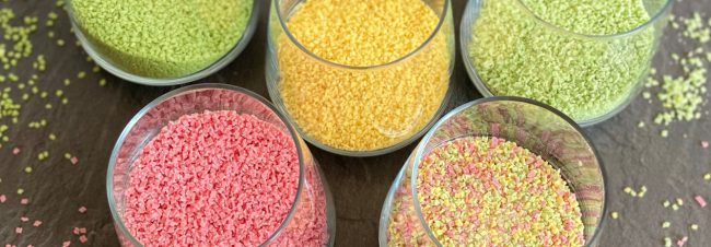 Colourful Micro Pieces Do you also like to decorate your baking creations in cheerful colours? The new micro pieces of our FoodPartner Herza let you brighten up baked goods and desserts, entirely without artificial colouring.
