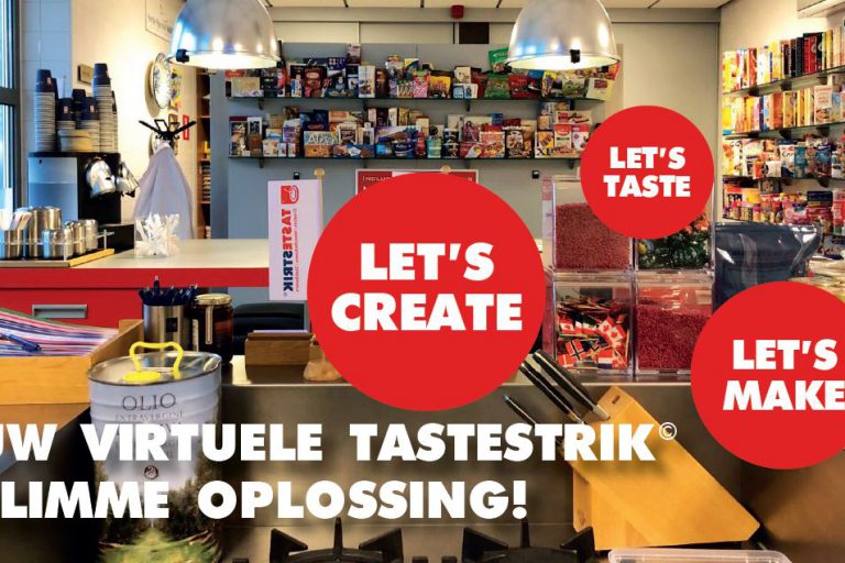 Uw Virtuele TasteStrik© – Slimme oplossing! U heeft een creatief idee en wilt weten of en hoe het smaakt? Dat kan met onze virtuele TasteStrik© – Slimme Oplossing! Ook nu zijn wij aanwezig in onze TasteKitchen© om uw ideeën uit te werken. We blijven mengen, bakken, koken, stomen, garen, frituren en proeven.